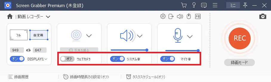 記録したいRobloxゲームを起動し、Screen GrabberPremiumに戻ります。 「システムサウンド」と「マイク」のスイッチを「オン」にすると、ゲーム内の音声と音声がキャプチャされます。次に、録音モードを「フル」または「カスタム」に選択します。セットアップが完了したら、「Rec」を押して開始します。